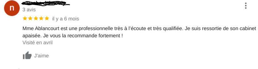 Quelques témoignages (source Google my business https://g.co/kgs/GVjPTh )